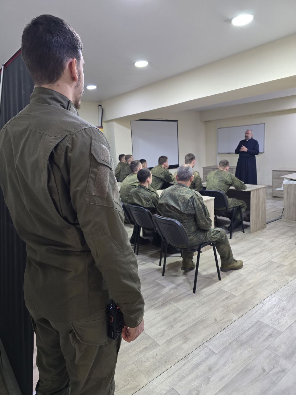 После молебна пастыри окропили личный состав святой водой, провели беседу о жизненном пути святого воина и передали подразделениям стяги с его изображением.