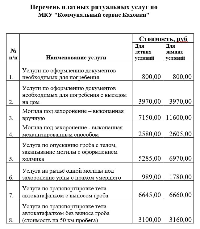 С 1 ноября вступают в силу новые тарифы на платные ритуальные услуги. С полным перечнем услуг и ценами можно ознакомиться в прикрепленном файле.