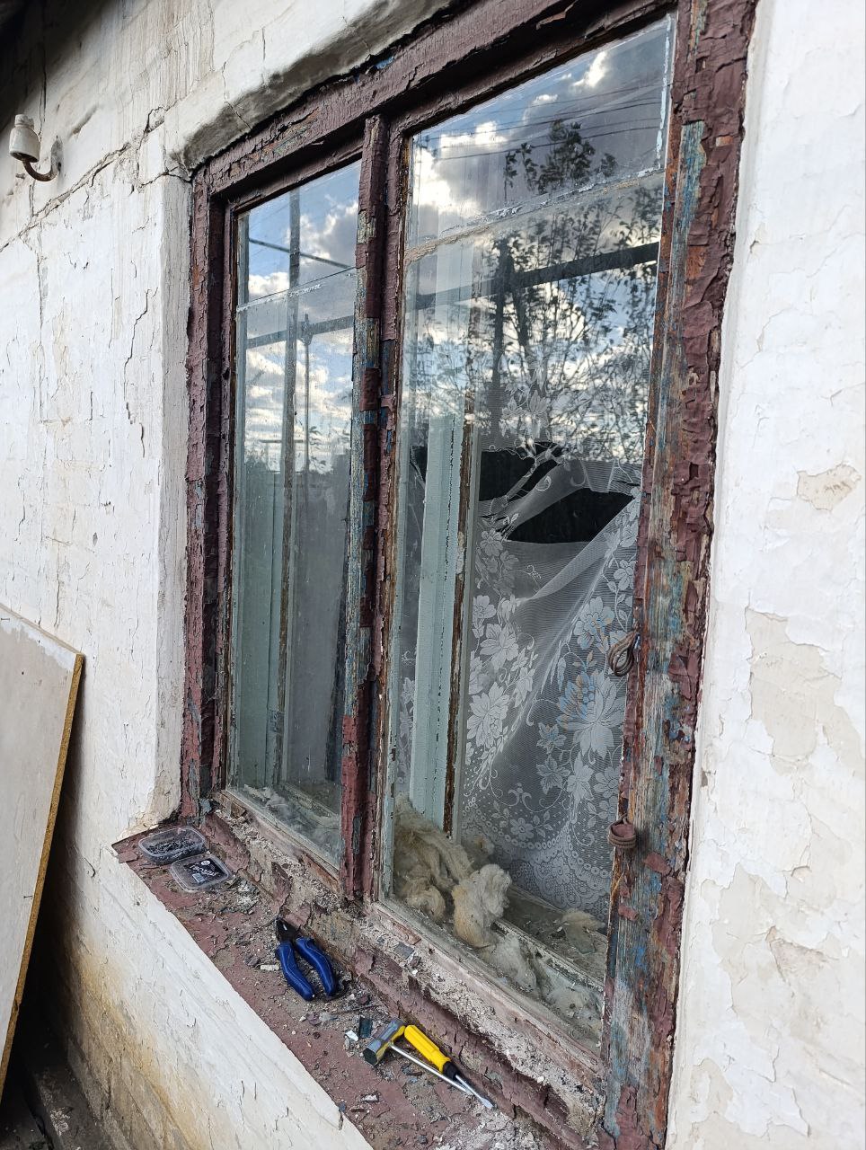 После артударов со стороны киевского режима в Администрацию обратилась местная жительница — снарядом повредило её дом: пробило крышу, выбило окна.