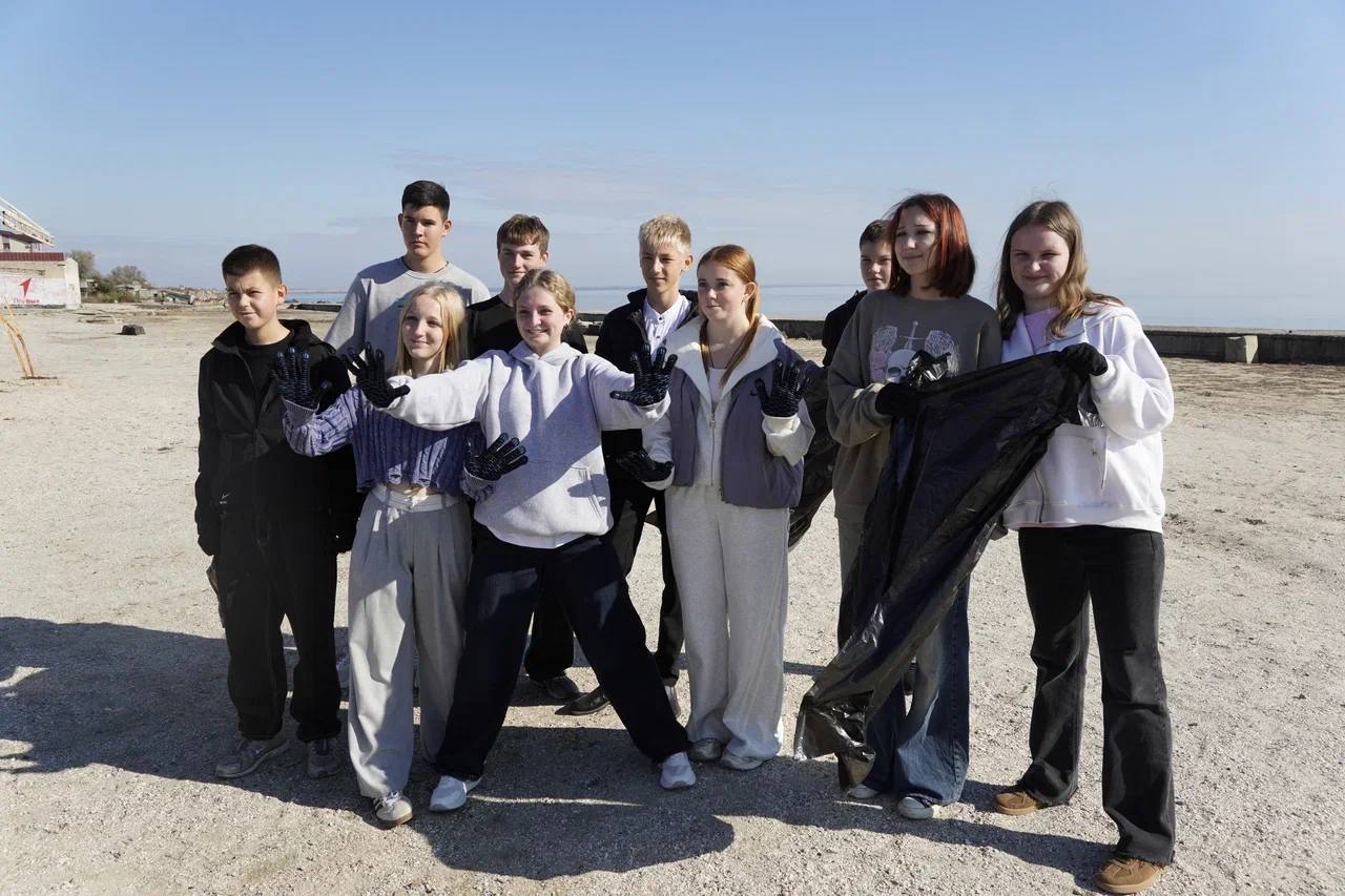 На пляже в Геническе юные натуралисты из "Движения Первых" устроили масштабную уборку