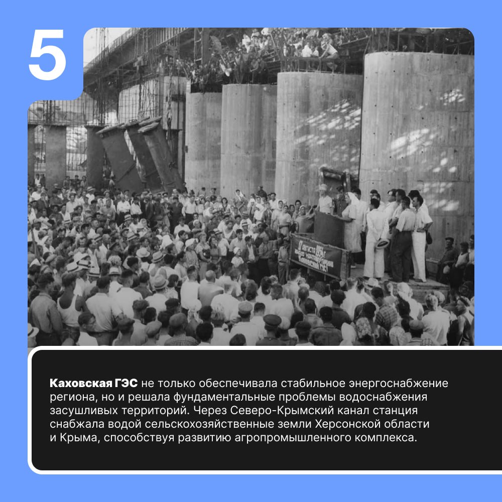 Всего за шесть лет, с 1950 по 1956 год, вырос гигантский гидроузел, ставший основой Северо-Крымского канала. Десятилетиями он снабжал водой засушливые территории, давая жизнь сельскому хозяйству. Энергия для Запорожской АЭС, водный путь для судов, орошение для полей — всё это зависело от Каховского гидроузла.