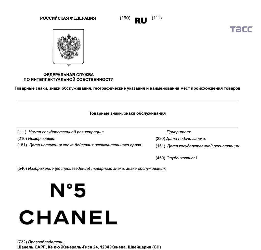 Chanel с 2022 года подала в Роспатент 36 заявок на регистрацию товарных знаковв РФ, следует из подсчетов корреспондента ТАСС