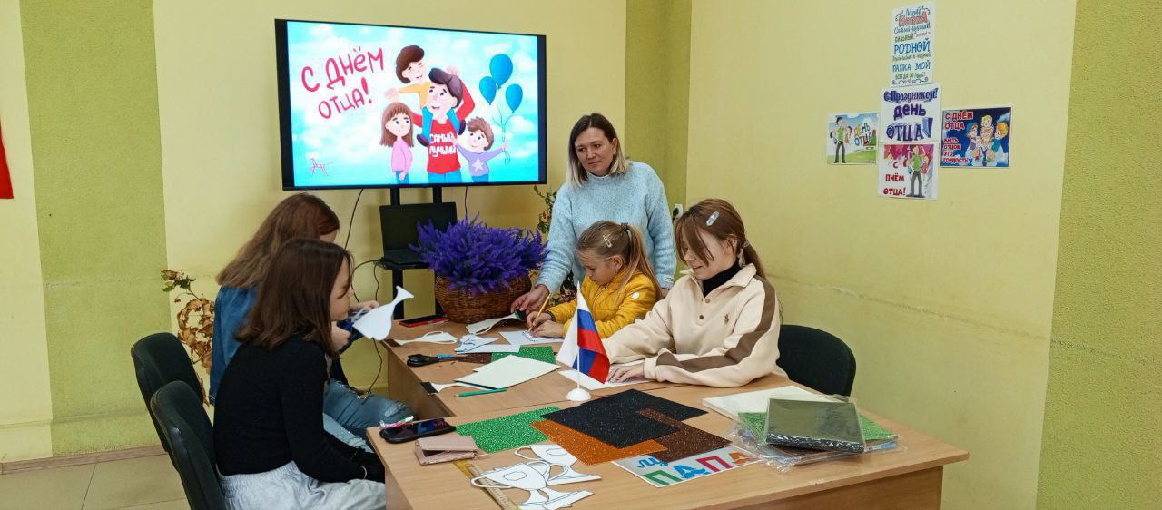 В библиотеке также прошёл творческий час "Подарок папе", посвящённый этому значимому празднику. Ребята сделали открытки для любимых пап.