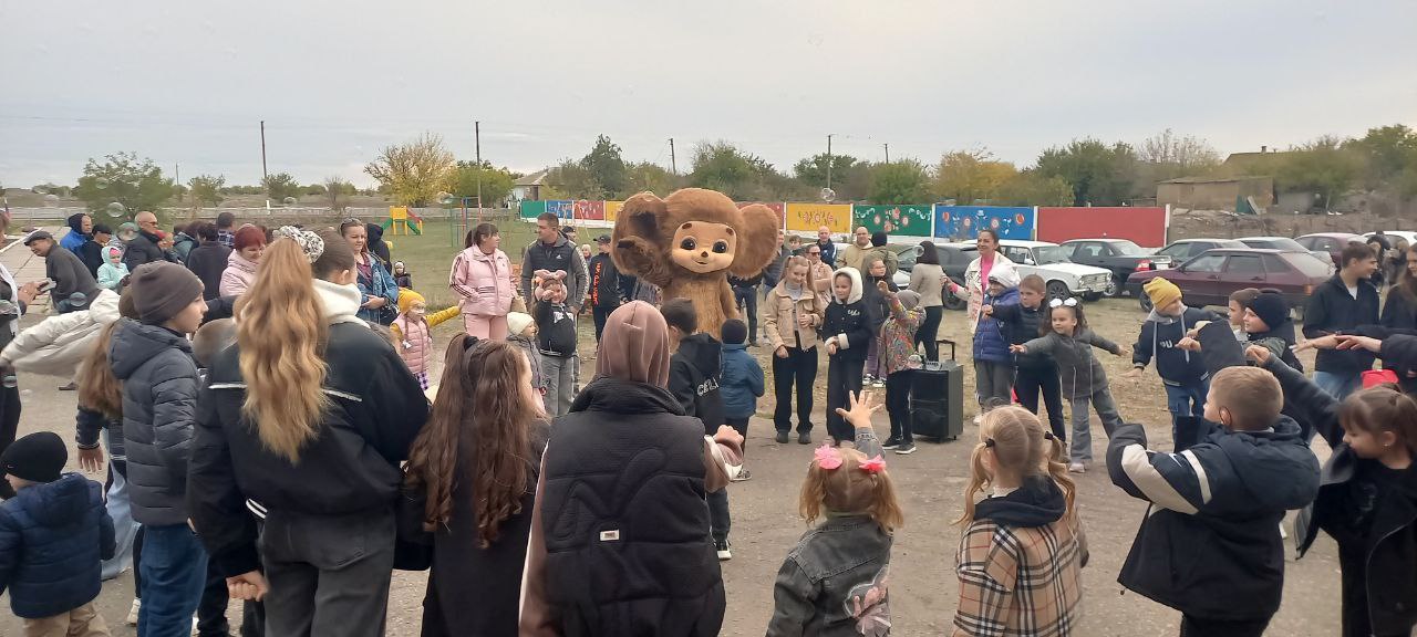 После концерта началось настоящее народное гуляние! Гостей ждали щедрые угощения: ароматный шашлык, наваристый плов и сладости. А для юных жителей села настоящим сюрпризом стали веселые аниматоры – милый Чебурашка и забавный Лабубу.