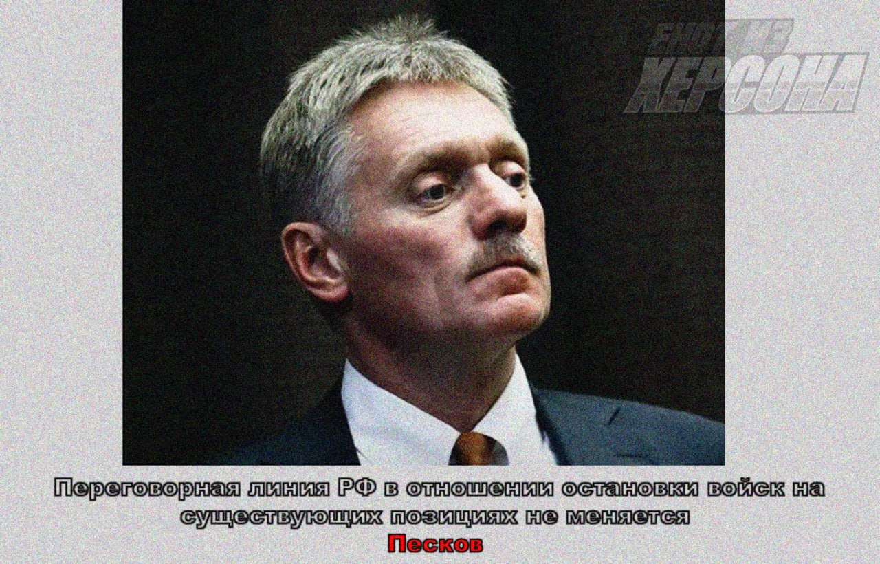 Переговорная линия РФ в отношении остановки войск на существующих позициях не меняется, заявил пресс-секретарь президента РФ Д.Песков. Только 4 региона и полная денацификация и демилитаризация