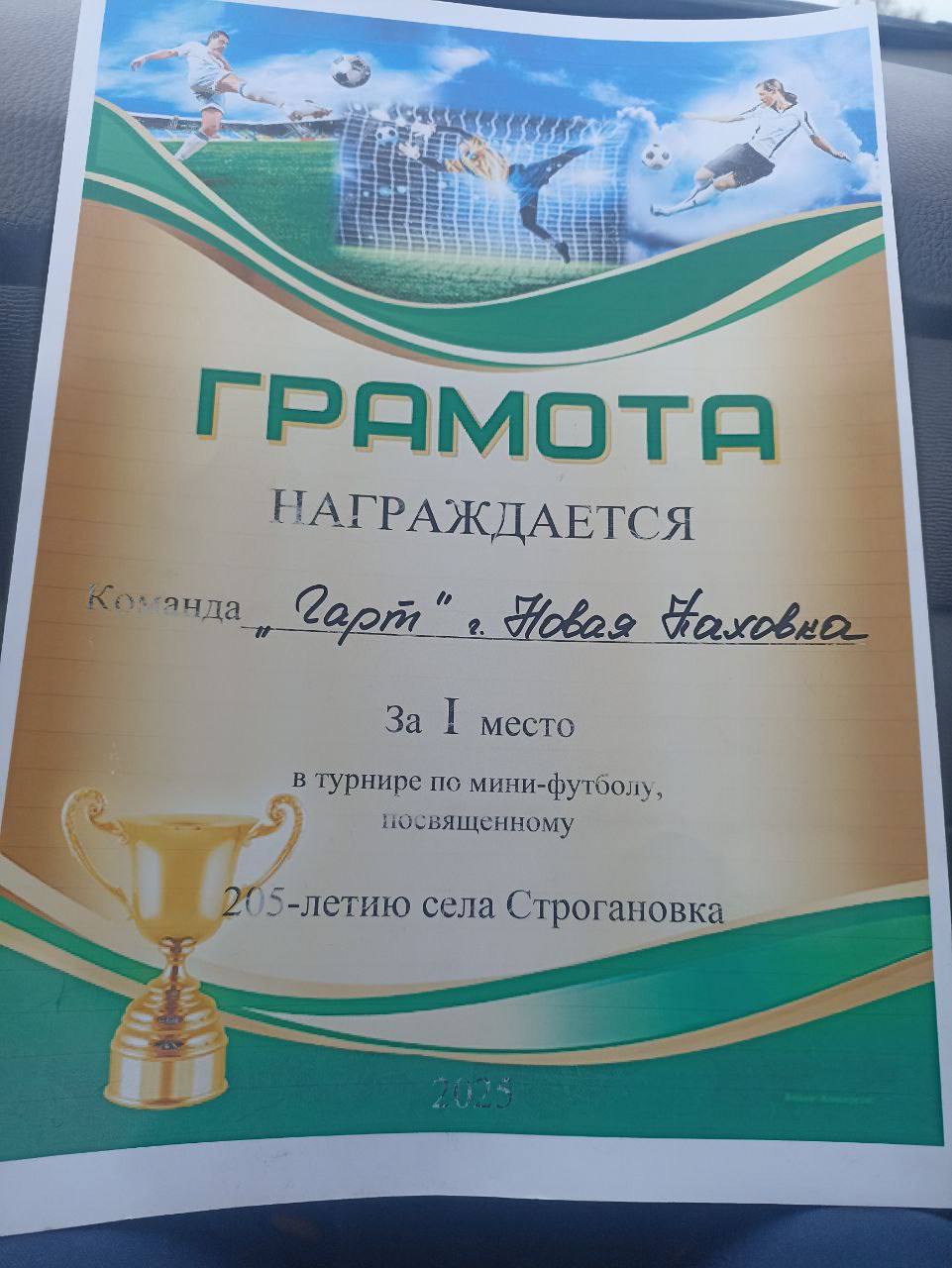 Поздравляю нашу футбольную команду «Гарт» с блестящей победой на турнире в селе Строгановка, посвящённом 205-летию этого населённого пункта!