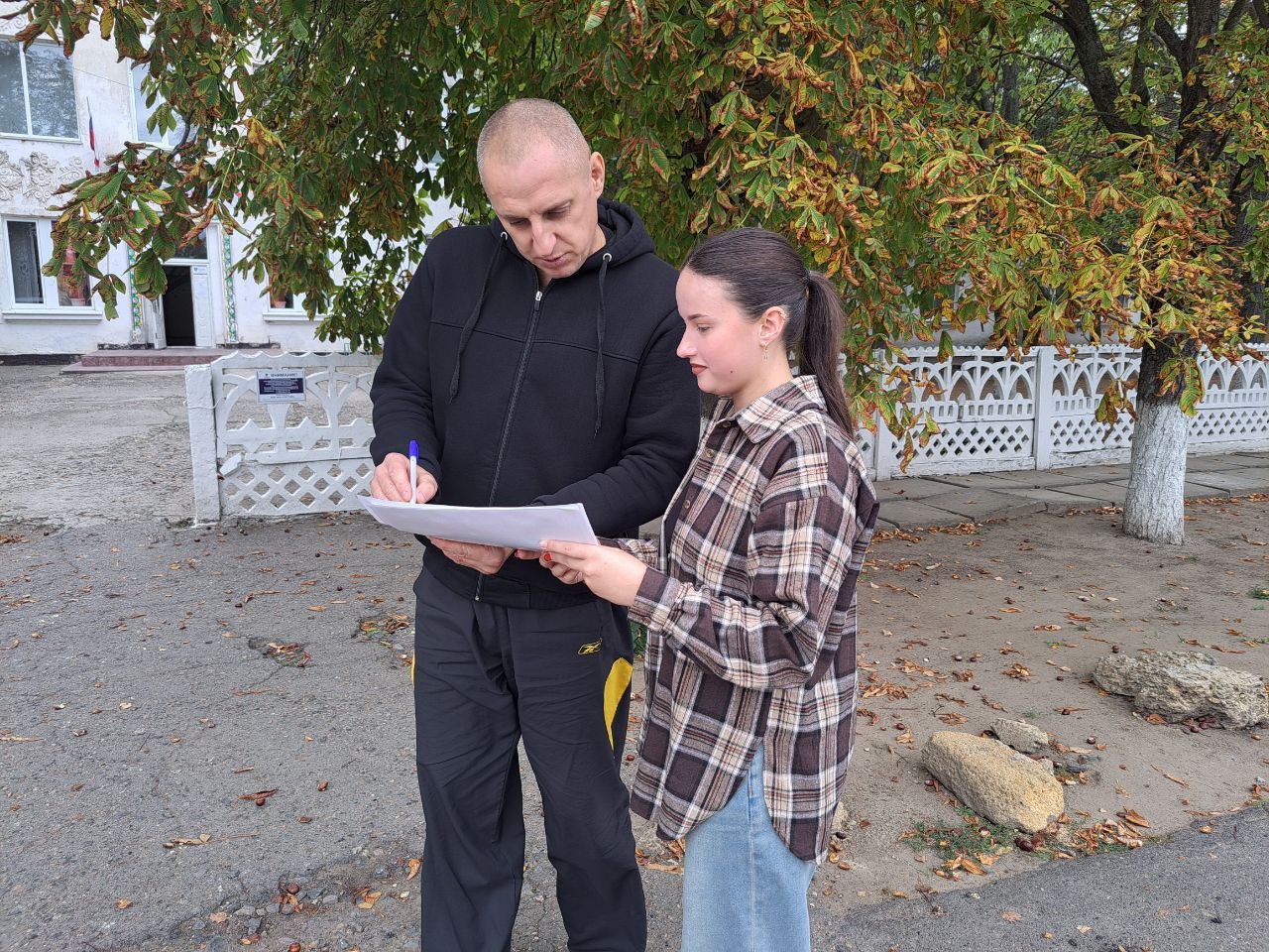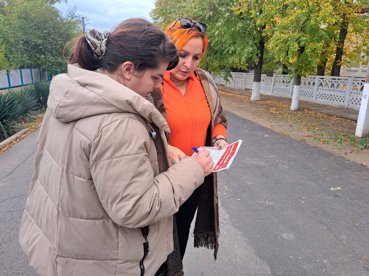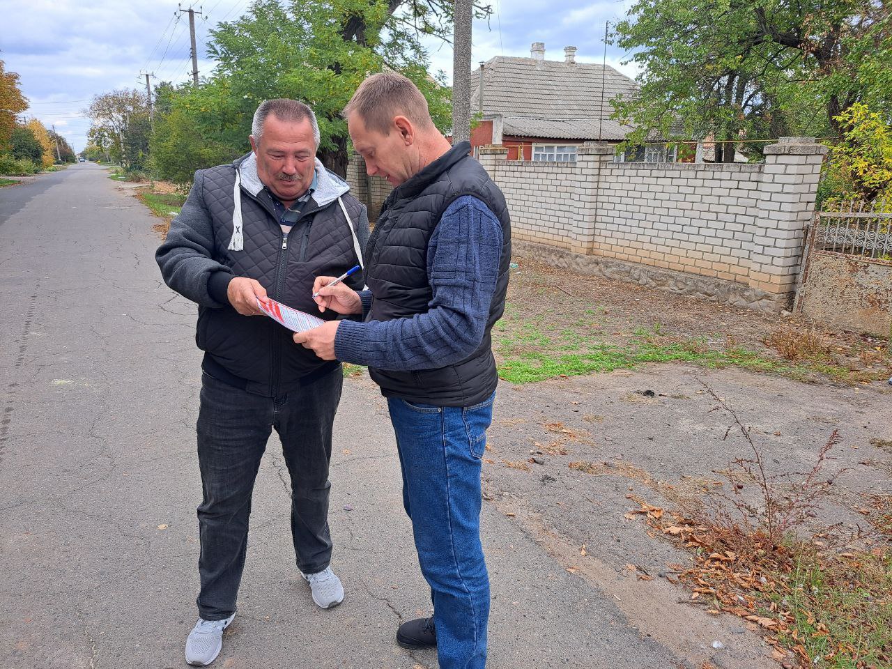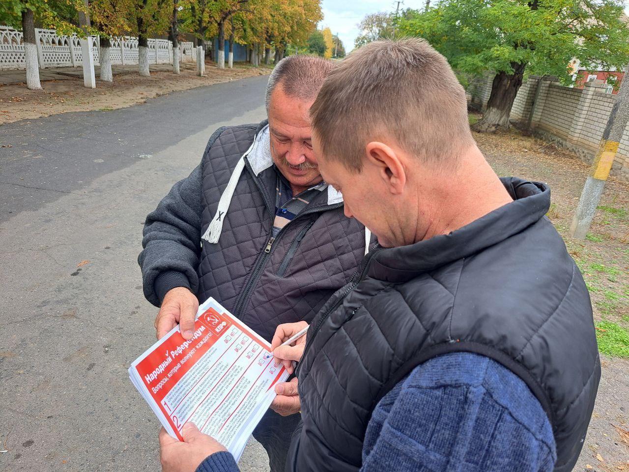 Секретари Херсонского регионального отделения КПРФ Николай Юрчук, Сергей Безпятов и коммунисты Чаплинского муниципального округа провели опрос среди жителей в рамках референдума.