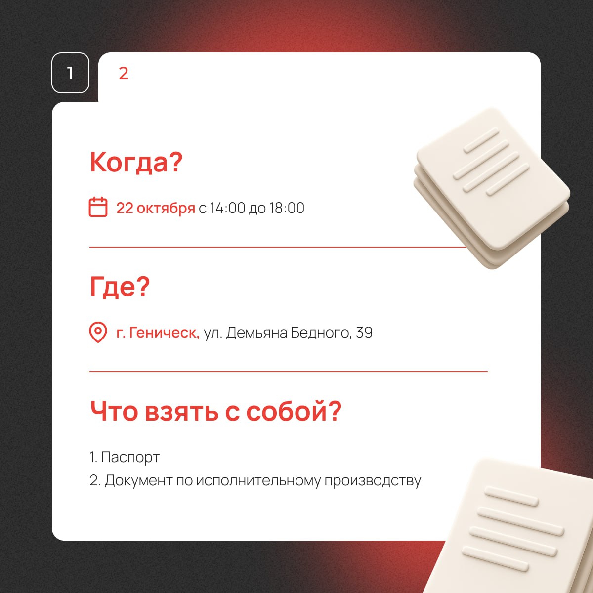 Теперь жители Херсонской области могут получить бесплатную консультацию судебного пристава в филиале МФЦ в городе Геническ. Специалисты ответят на вопросы о взыскании долгов: по зарплате, алиментам, кредитам и другим категориям.