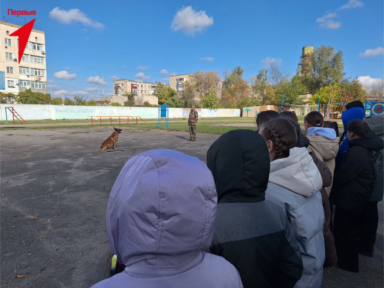 Активисты Движения Первых из 5 и 10 классов Чаплинской школы № 1 приняли участие профориентационной встрече с кинологами.