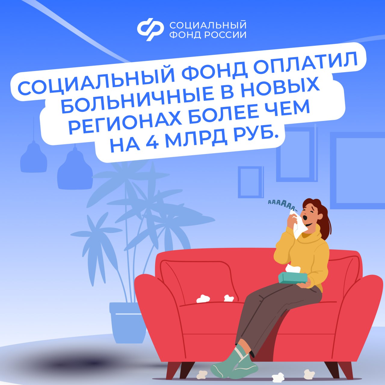 С начала года отделения Социального фонда России в новых регионах перечислили гражданам пособия по временной нетрудоспособности: в ЛНР было выплачено 1,3 млрд руб. по 95,8 тыс. больничным листам, в Запорожской области сумма выплат составила 581,1 млн руб. для 14 тыс. жителей. В ДНР выплаты достигли 2,2 млрд руб., охватив 86 тыс. человек, а в Херсонской области выплачено 151 млн рублей по больничным листам 5,2 тыс. жителей.