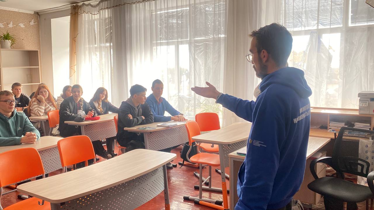 С активистами Рубаноской школы встретился и.о. руководителя аппарата Херсонского отделения «Молодой Гвардии» Авенир Саманов.