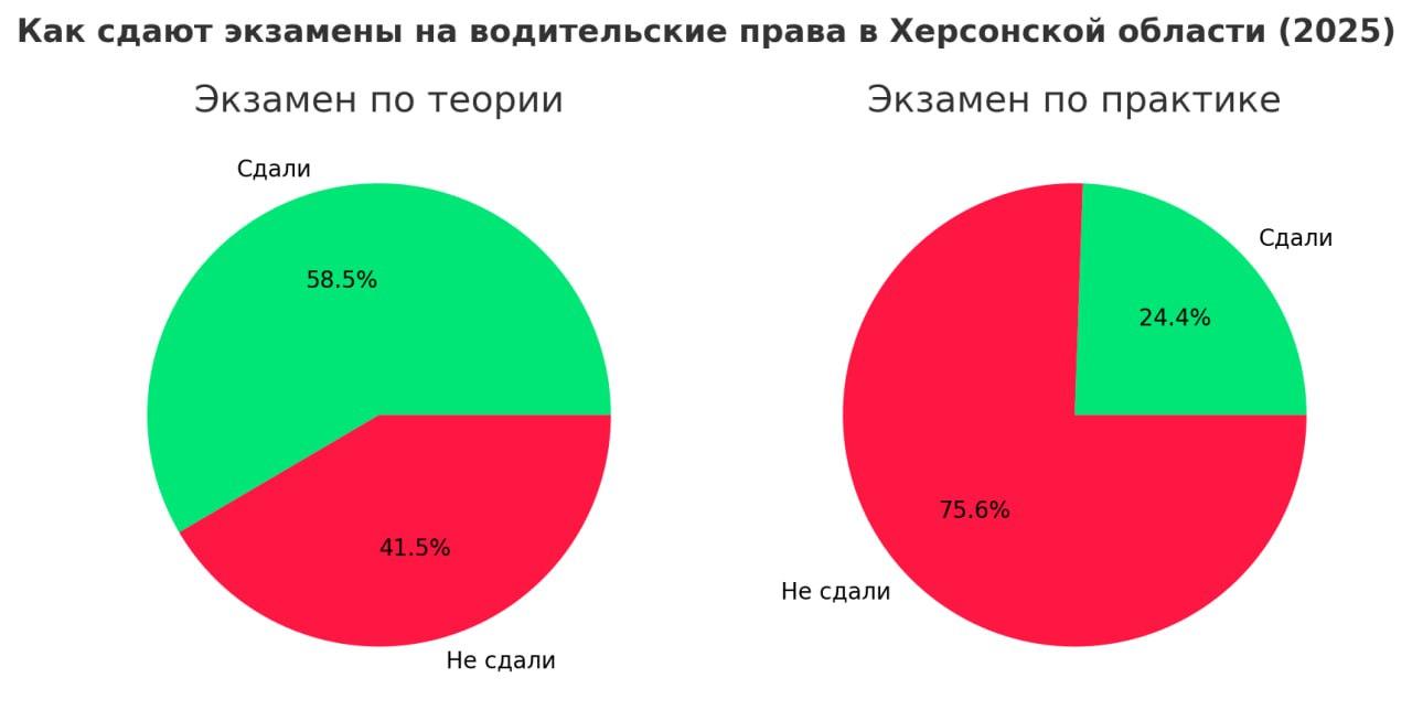 В 2025 году только 24% учеников автошкол Херсонской области сдали экзамен в ГАИ, сообщили "Таврии" в Госавтоинспекции региона