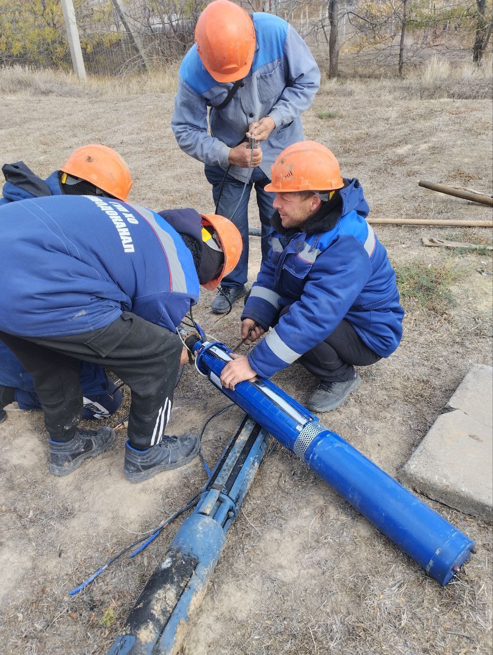 Кроме того, были проведены аварийно-восстановительные работы на артезианской скважине поселка. Работниками предприятия был демонтирован и установлен насос ЭЦВ, произведена замена страховочного троса из нержавеющей стали, частотного преобразователя и датчика избыточного давления.