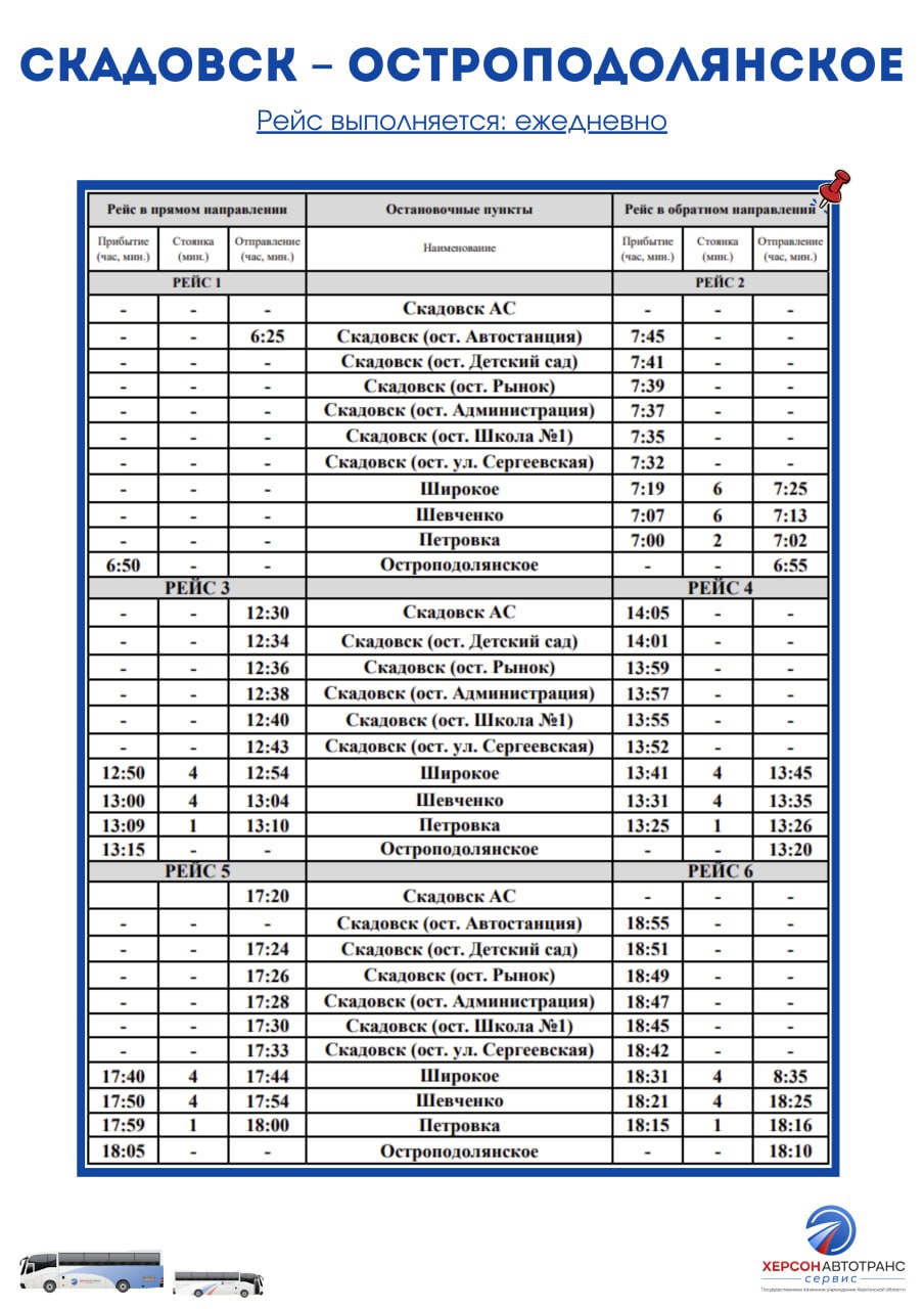 № 111 СКАДОВСК – ОСТРОПОДОЛЯНСКОЕ