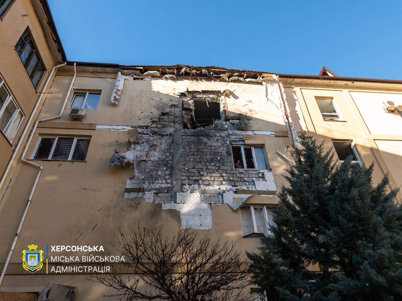 Вчера вечером был нанесен удар из артиллерии по Центральной части Херсона.