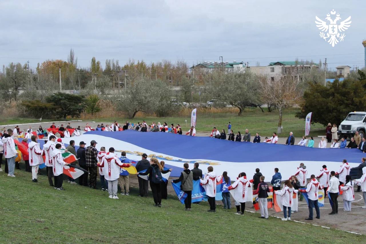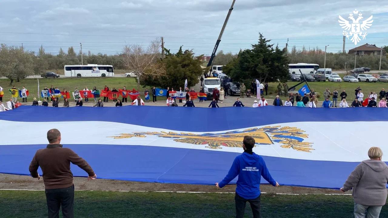 В преддверии Дня народного единства в селе Геническая Горка состоялась масштабная патриотическая акция «Энергия двух морей». Её центральным событием стало разворачивание 800-метрового флага Херсонской области, в котором приняли участие более 500 человек.
