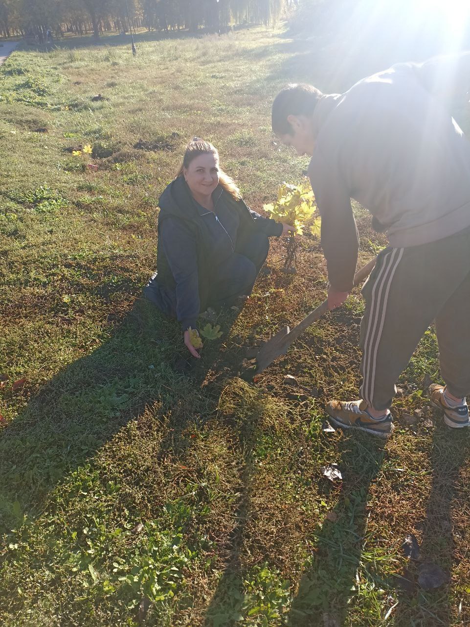 Помимо высадки деревьев участники провели уборку территории парка: собрали листья и мусор, что значительно улучшило состояние зоны отдыха.