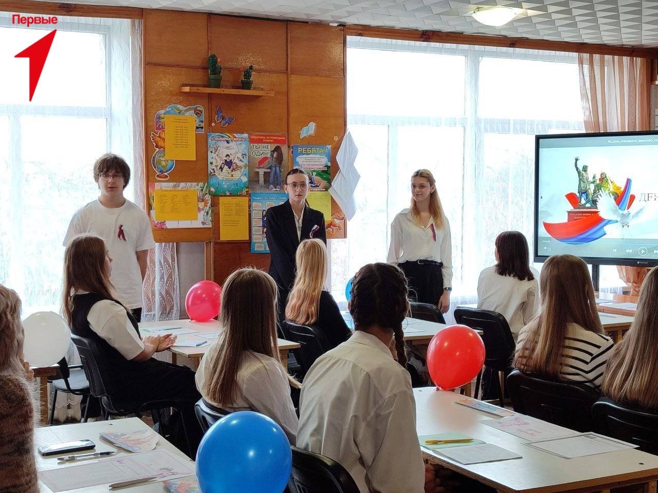 Активисты Движения Первых Новотроицкой школы № 2 приняли участие в уроке, который был посвящен Дню народного единства. Мероприятие подготовила и провела классный руководитель 10Б класса Елена Арещенко. Также на уроке присутствовала Начальник отдела внутренней политики и молодежи Татьяна Крышко.