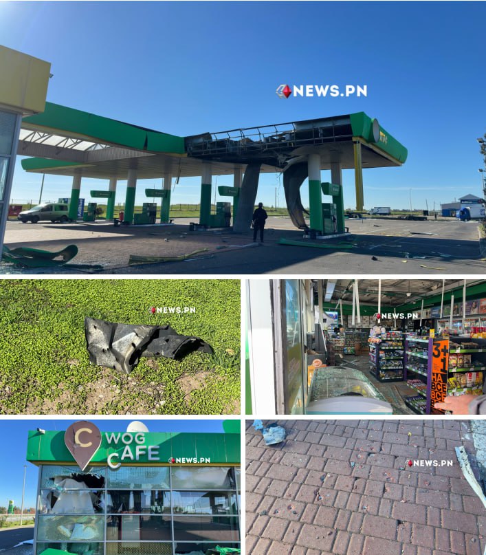 Повреждены три АЗС, четырнадцать транспортных средств, одно частное здание и линия электропередач.