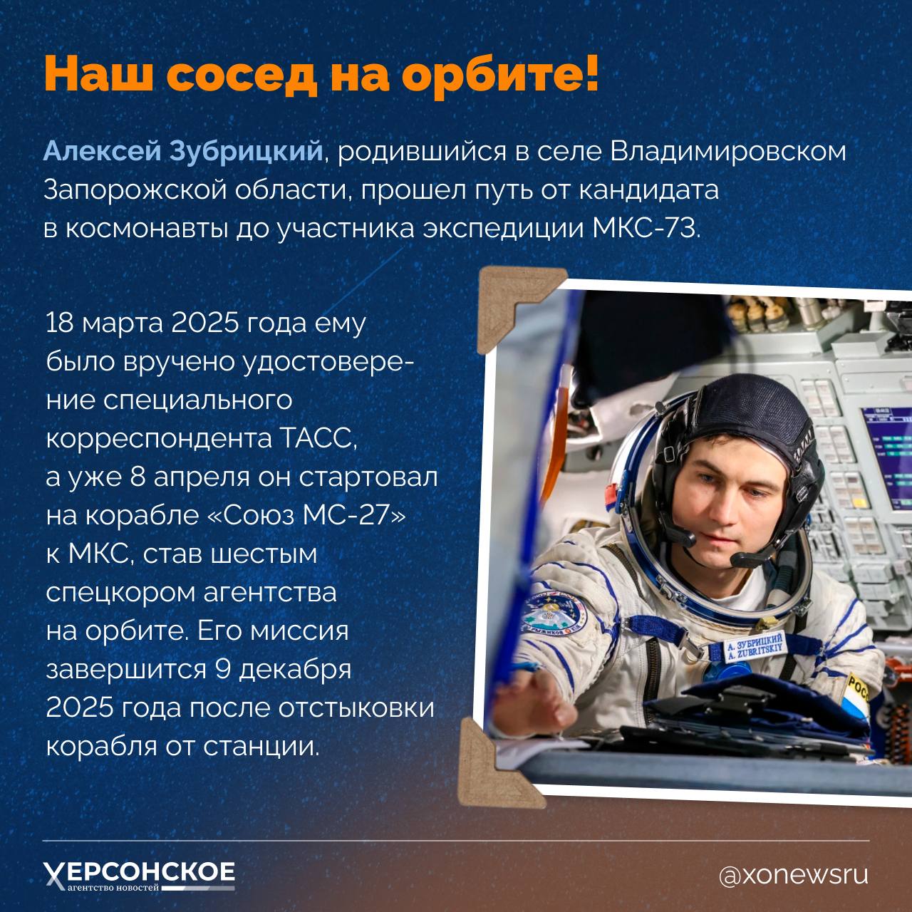 И сейчас там трудится наш космонавт Алексей Зубрицкий из села Владимировского соседней Запорожской области.