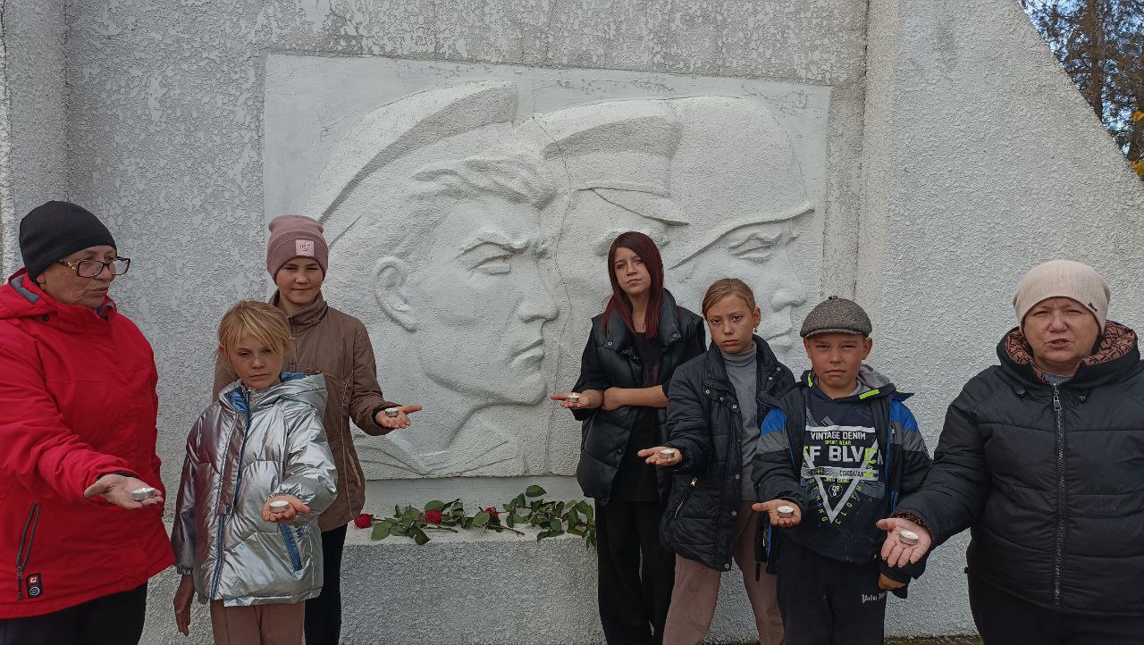Все собравшиеся почтили память погибших, возложив живые цветы к памятнику и зажег свечи.