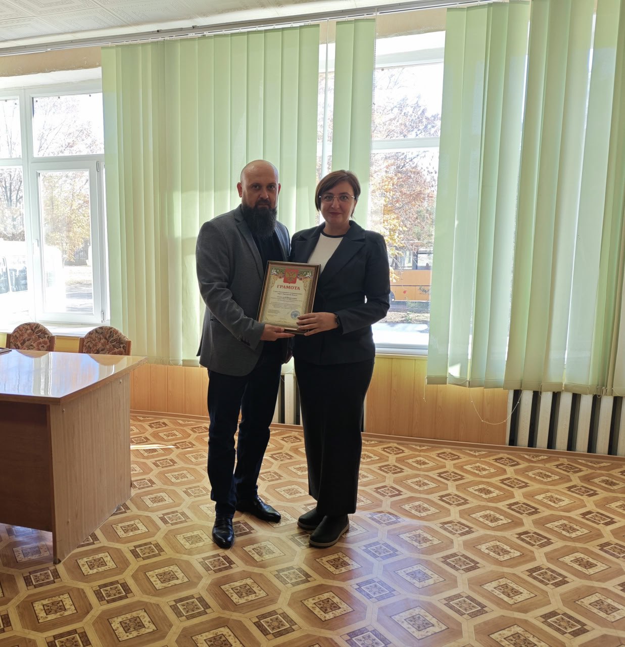 В преддверии Дня народного единства заместитель Главы Администрации Новотроицкого муниципального округа Александр Лепа посетил Новотроицкую школу №2, чтобы поздравить педагогический коллектив с наступающим праздником и вручить почетные грамоты Главы Новотроицкого муниципального округа Евгении Кузьменко тем, кто ежедневно вносит вклад в гражданское и патриотическое воспитание молодежи.