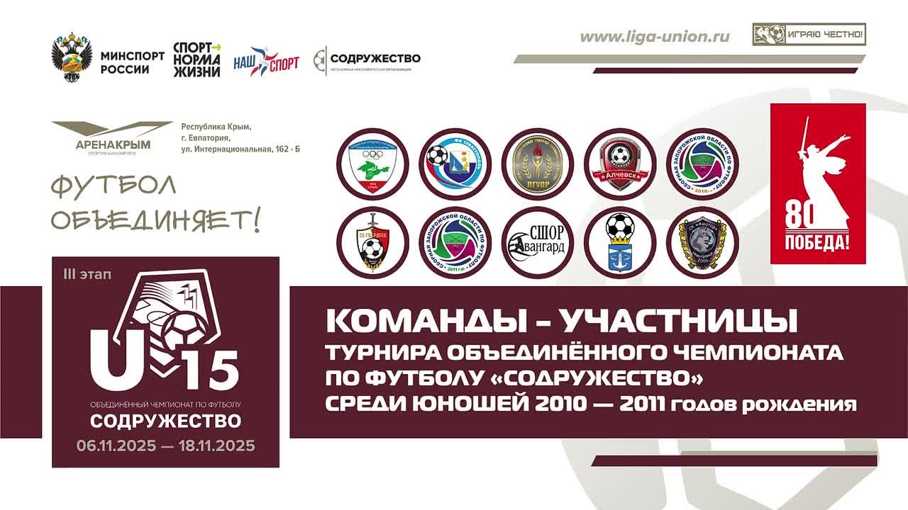 Лига «Содружество» приветствует участников III этапа турнира Объединённого чемпионата по футболу «Содружество» среди юношей 2010-2011 годов рождения U-15