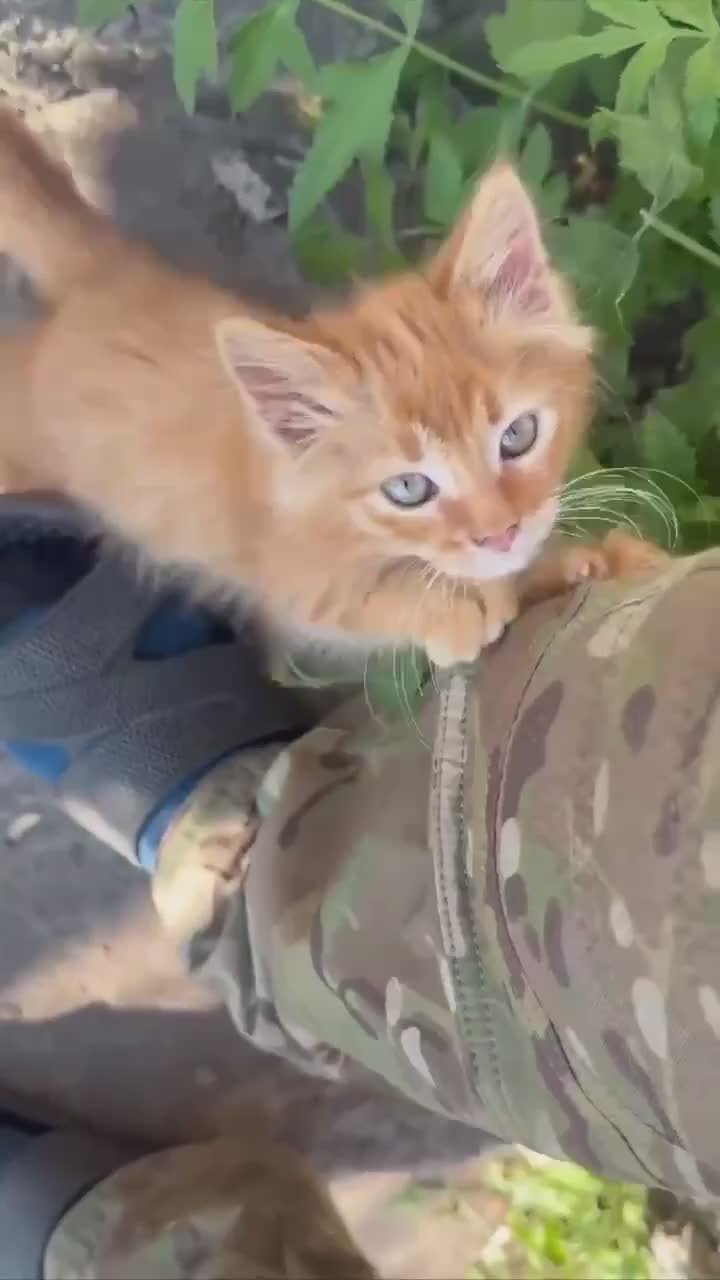 Наш пушистый боец тестирует обмундирование ребят на прочность.