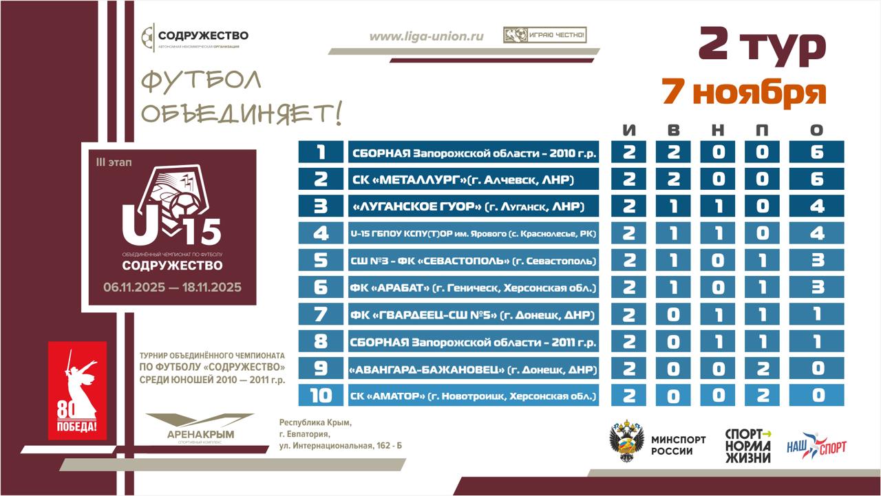 Турнирная таблица после 2 тура III этапа турнира Объединённого чемпионата по футболу «Содружество» среди юношей 2010-2011 годов рождения (U15)