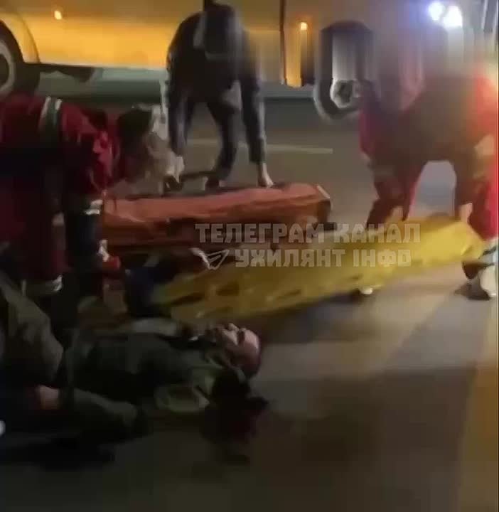 Повідомляється, що внаслідок падіння чоловік сильно вдарився головою, знепритомнів і лежить посеред дороги в калюжі крові.