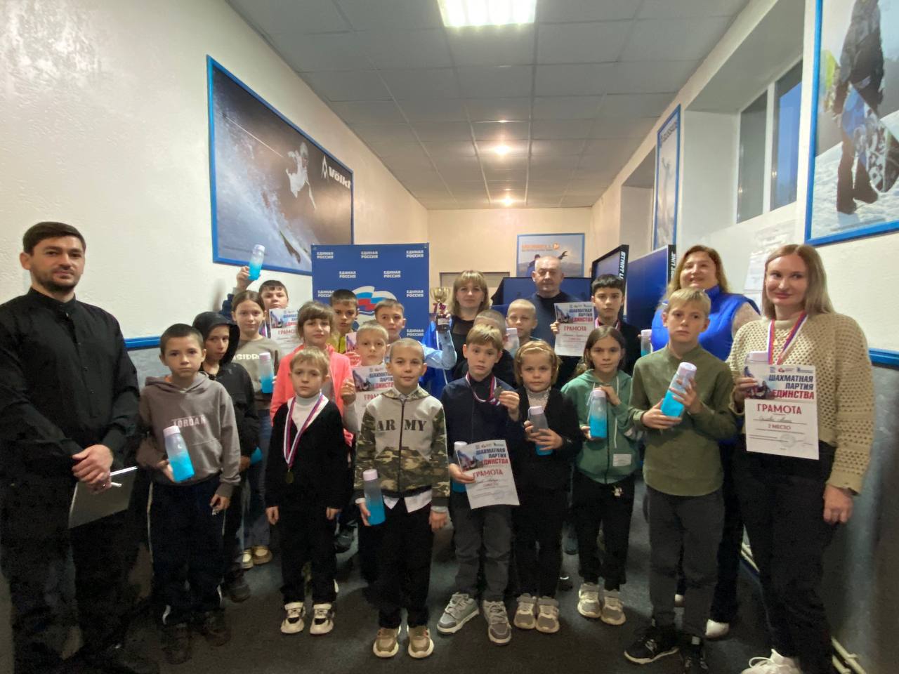 Депутат Совета депутатов Чаплинского округа фракции «Единая Россия» Алина Кацидан и секретарь первичного отделения партии Кристина Иноземцева вручили победителям заслуженные награды – кубки, медали и мини-шахматы, а каждый участник получил полезный подарок.