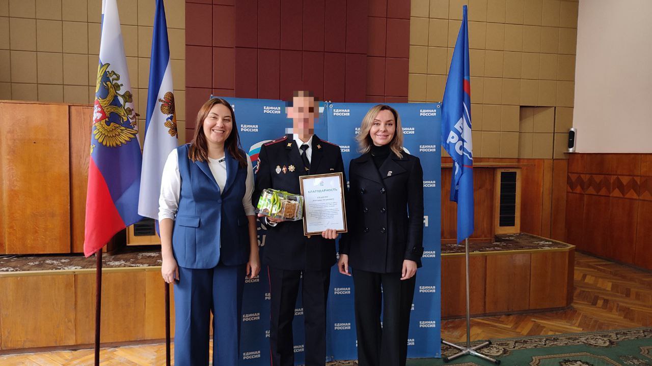 Совместно с главой Новотроицкого округа, секретарем местного отделения «Единой России» Евгенией Кузьменко поздравили сотрудников полиции, передали небольшие подарки и самые тёплые слова благодарности за их службу.