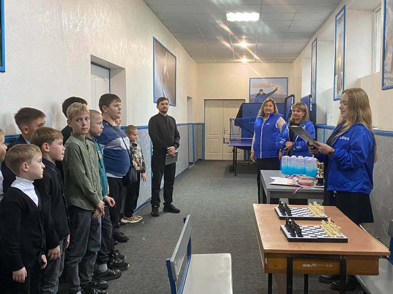 Депутат Совета депутатов Чаплинского округа Алина Кацидан и секретарь первичного отделения партии Кристина Иноземцева вручили победителям кубки, медали и минишахматы: каждый участник получил полезный подарок.