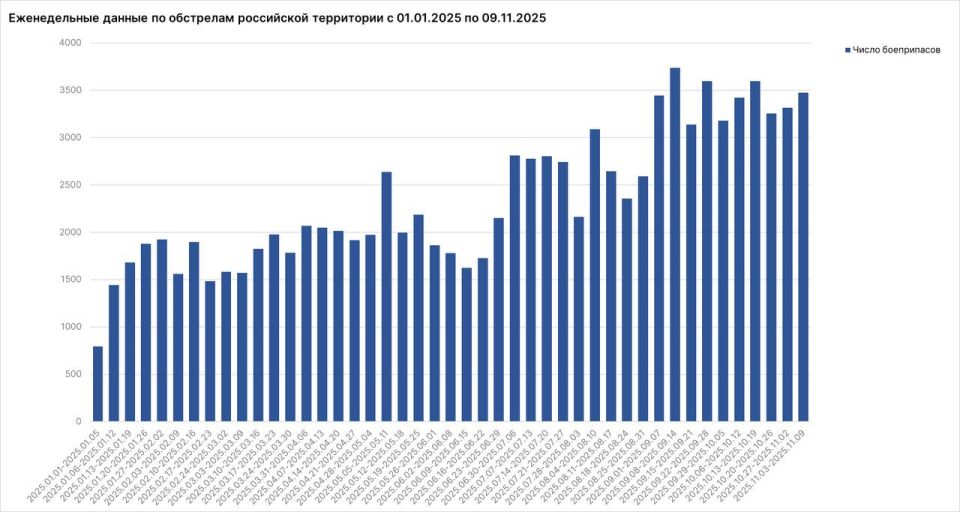 Число ударов ВСУ по гражданским объектам на российской территории на минувшей неделе достигало 500 в сутки.