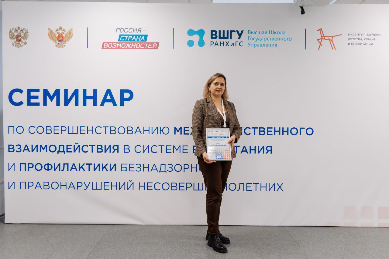 В Москве состоялся семинар, посвященный совершенствованию межведомственного взаимодействия в системе воспитания и профилактики безнадзорности и правонарушений несовершеннолетних. От администрации Голопристанского муниципального округа Херсонской области в мероприятии приняла участие начальник отдела по социальным вопросам, по работе с несовершеннолетними и защите их прав Татьяна Нигай.