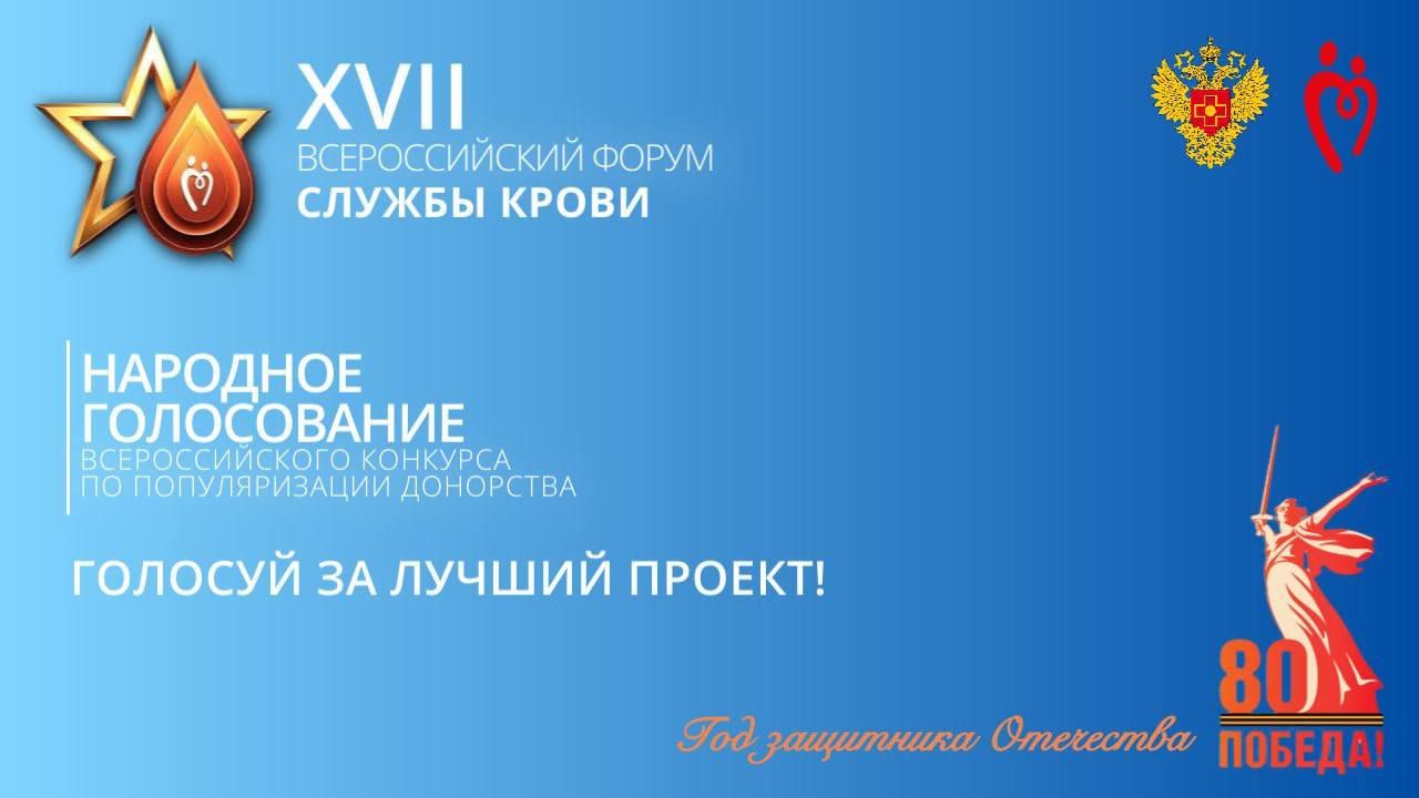 На официальном сайте Форума Службы крови стартовало открытое народное голосование в рамках Всероссийского конкурса по популяризации донорства.