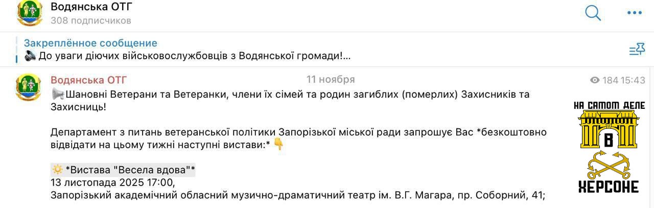 Запорожский департамент по делам ветеранов превзошел самого себя в искусстве чёрного юмора. Чиновники пригласили жён и семьи погибших военных на... комедийный спектакль под названием «Веселая вдова».