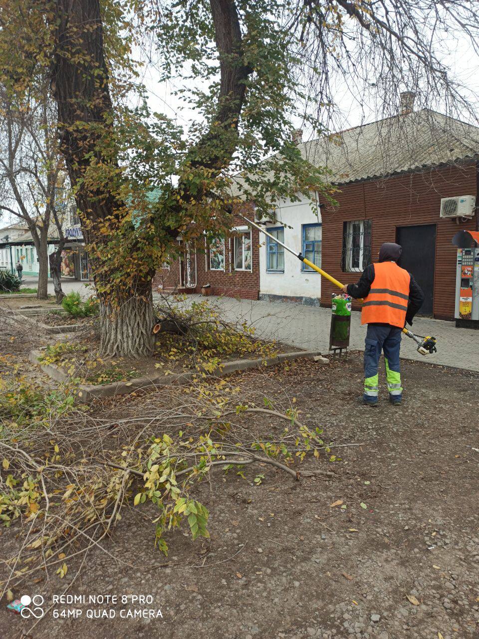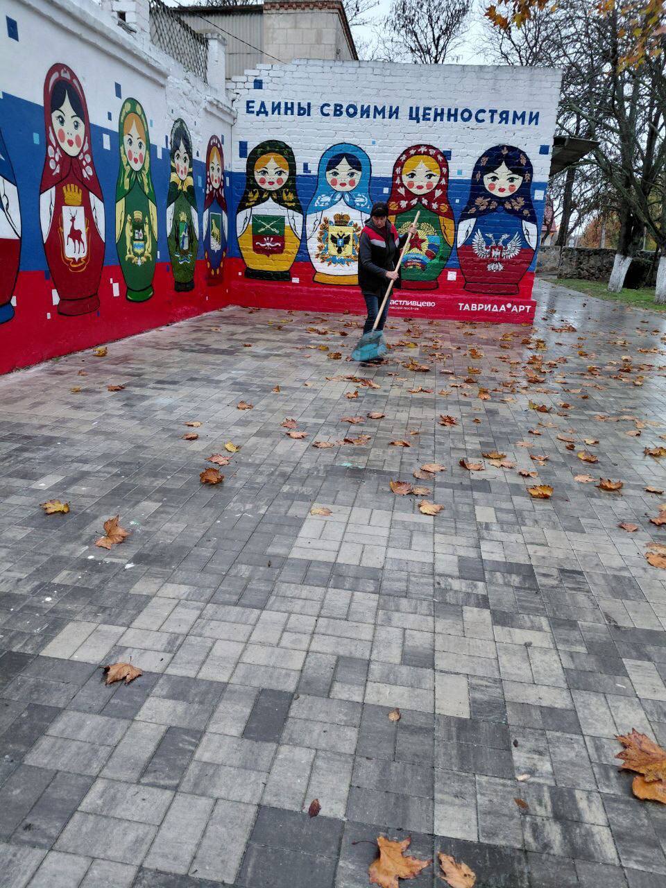пгт. Новоалексеевка: Убрана опавшая листва на территории поселка.