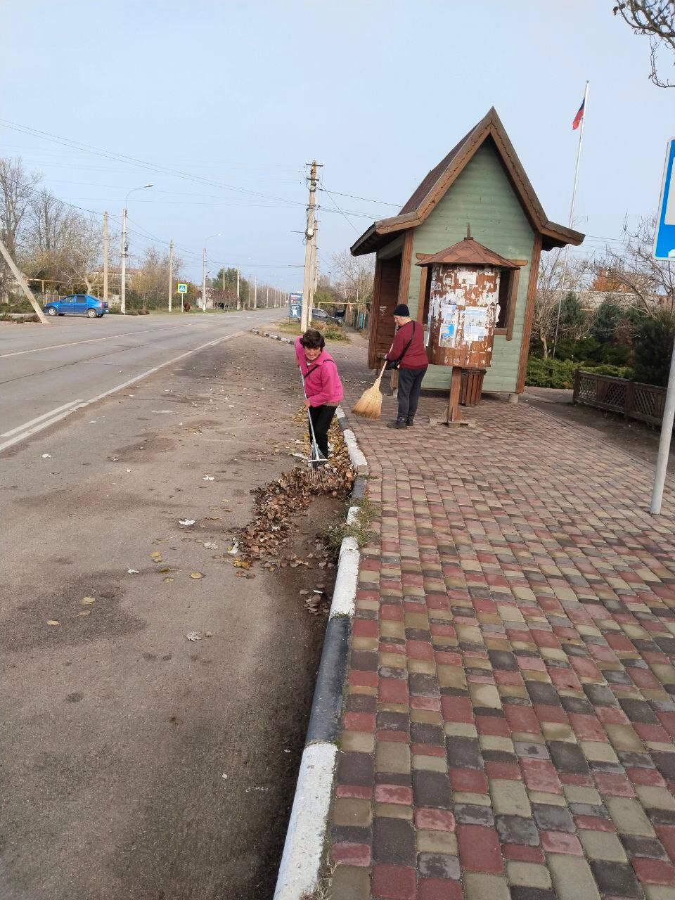 с. Счастливцево: Выполнена уборка мусора и листвы на остановках и автомобильных стоянках.