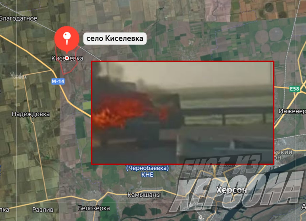 Результат попадания дрона любезно предоставляет украинская сторона. Горит транспорт, использующийся всушниками