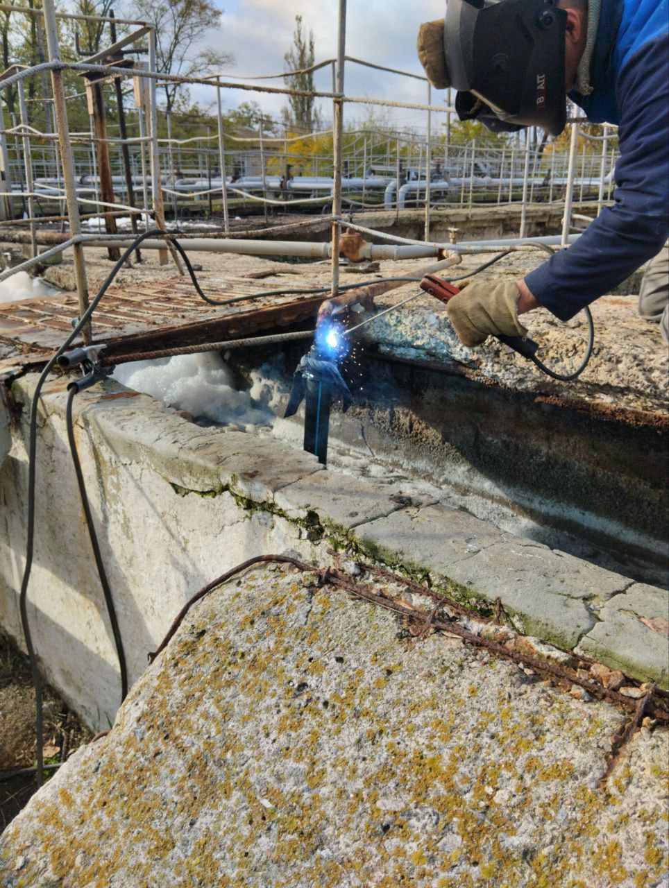 Так же велась работа на канализационных очистных сооружениях, где ремонтной бригадой был осуществлен монтаж аэрационной трубы, а также выполнены работы по устранению свища на напорном трубопроводе методом заварки.