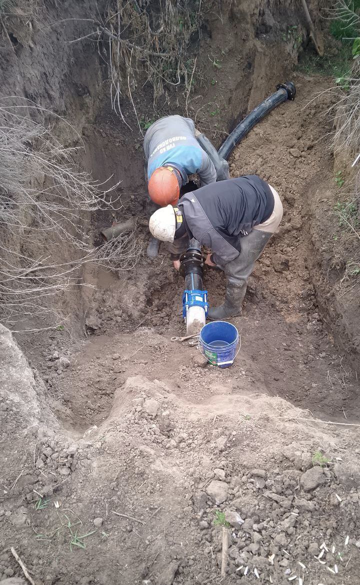 В Дружбовке на улице Мира произведена замена изношенного участка металлического трубопровода на современный пластиковый аналог протяженностью 6,5 метров. Особое внимание уделено герметизации соединений, для чего использована каболка, ватерплаг и обсадные хомуты.