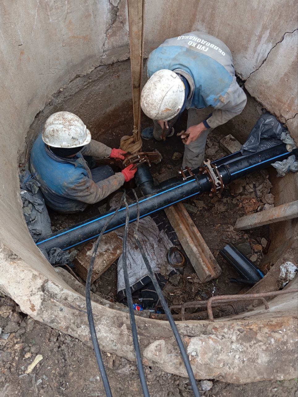В пгт Ивановка проведены аварийно-восстановительные работы по улице Украинской. Демонтирован аварийный участок асбестовой трубы и бетонные кольца, после чего выполнена укладка нового пластикового трубопровода длиной 35 метров.