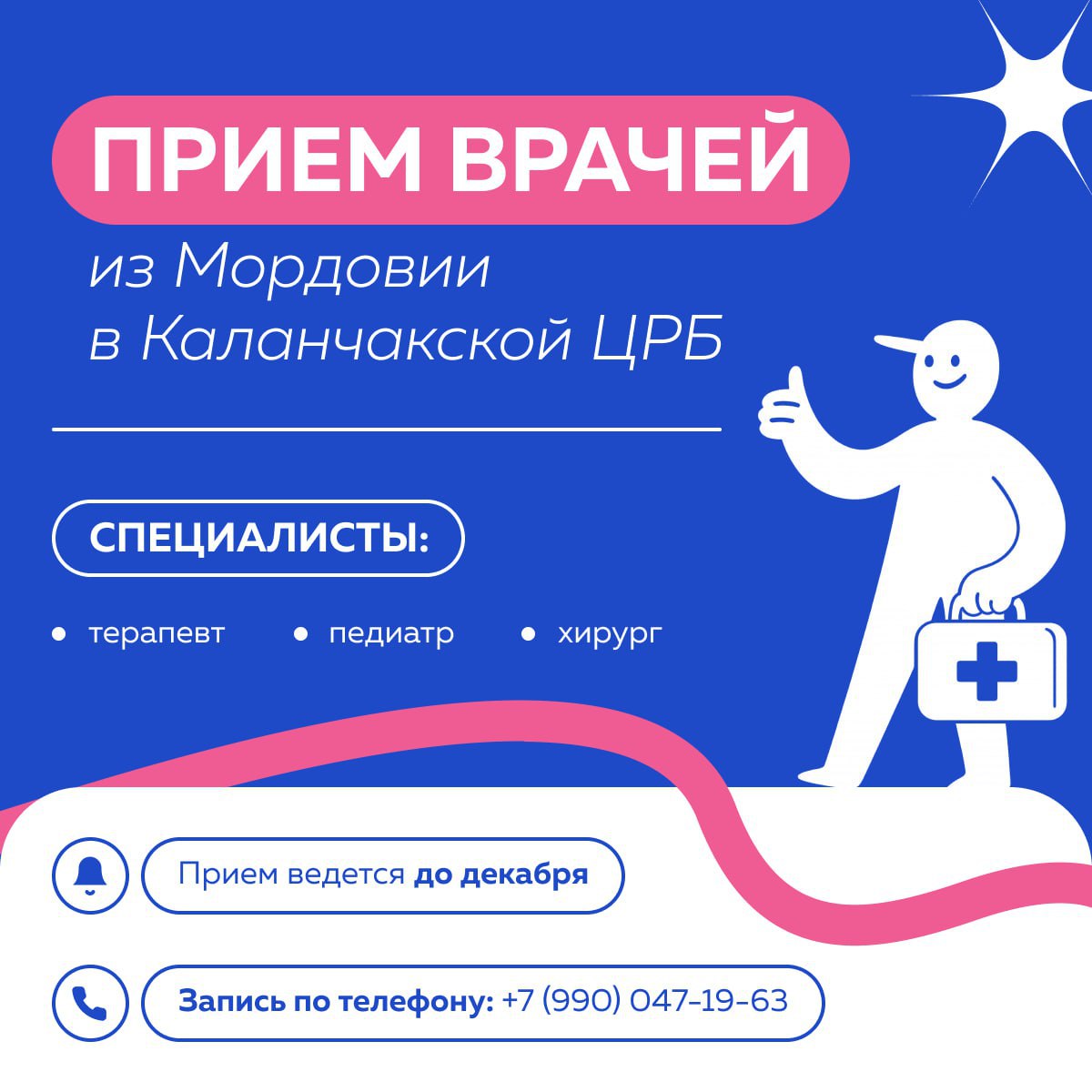Запись на прием к специалистам осуществляется через регистратуру ЦРБ или по телефону: +7 (990) 047-19-63.