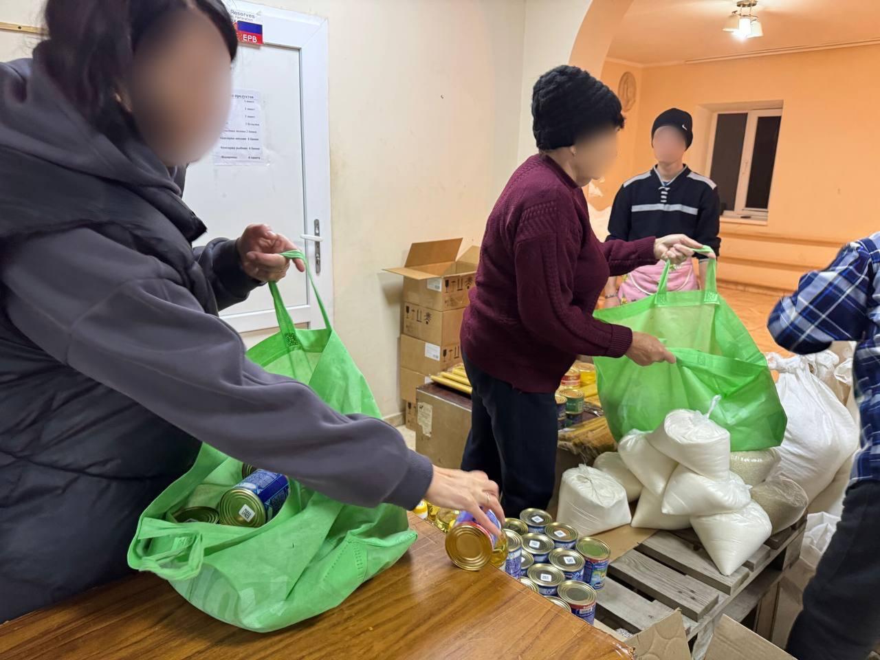 В гуманитарные наборы вошли продукты, наиболее востребованные в повседневной жизни. Жителям были предоставлены: крупы, макаронные изделия, растительное масло и другие необходимые товары.