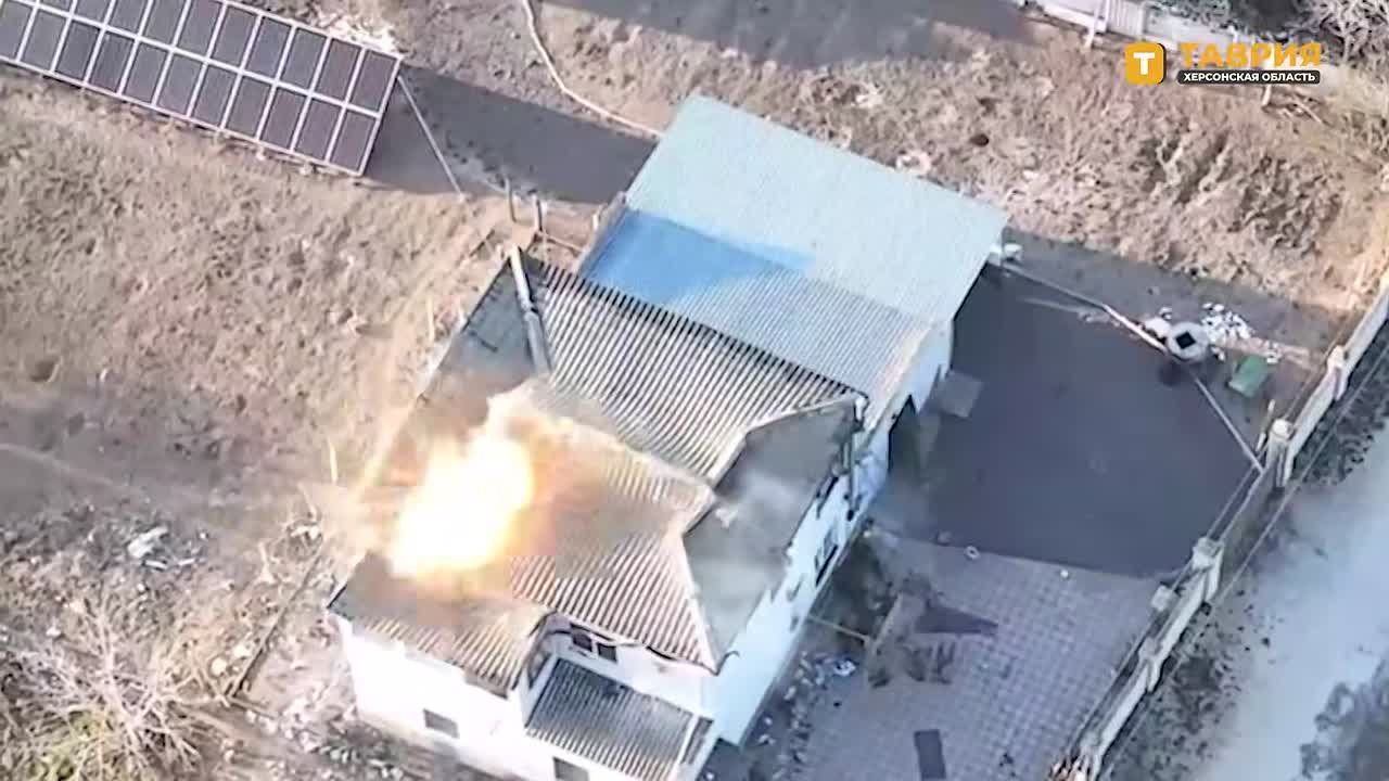 Оператор с позывным "Гринч" принял решение нанести удар по крыше дома, с целью обрушить ее. Далее специалисты расчета методично и точно уничтожили пункт временной дислокации ВСУ.