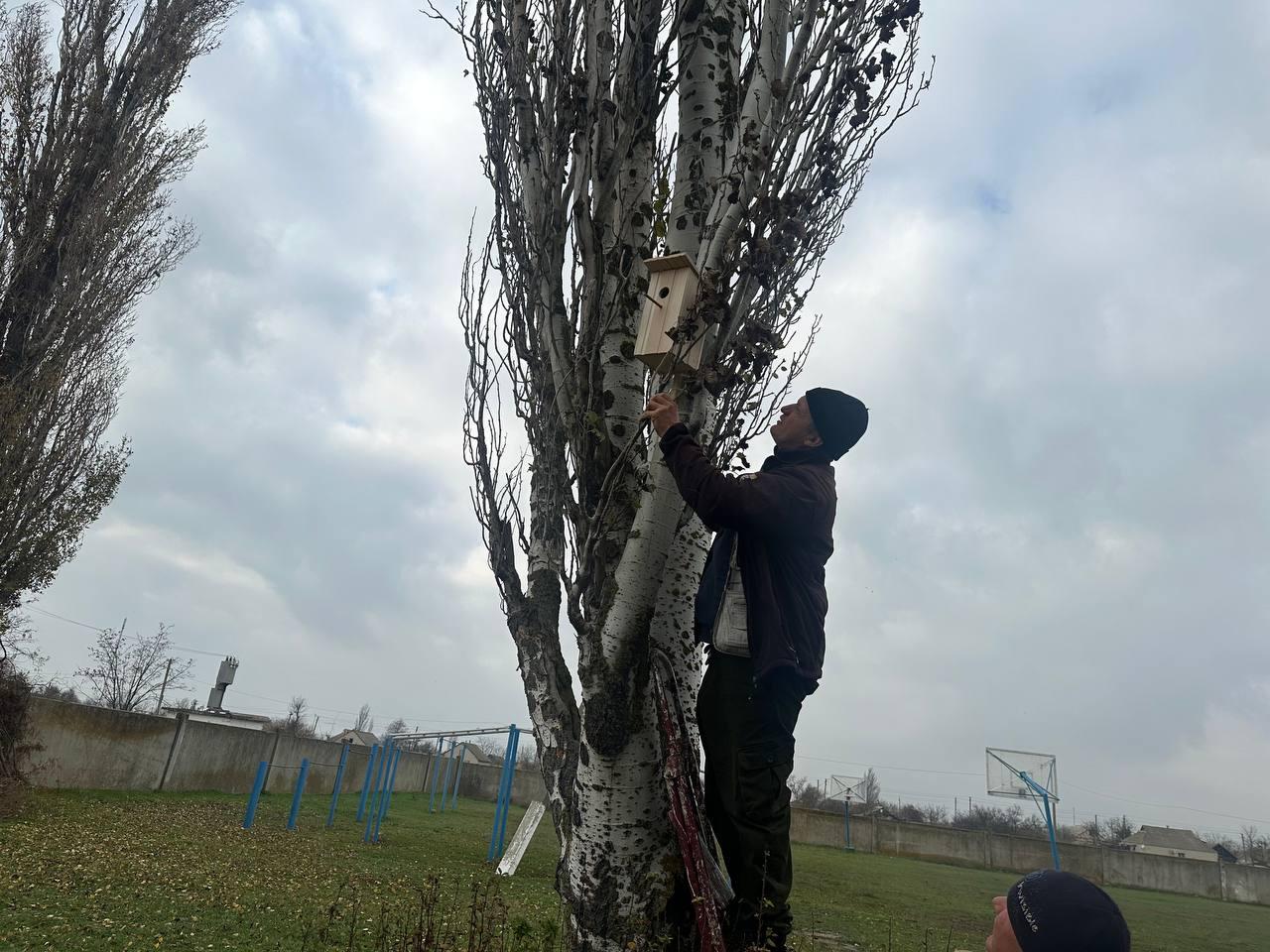 ГБОУ ХО «Владимировская школа Скадовского муниципального округа», совместно с сотрудниками ГАУ ХО Природный Парк «Алешковские Пески» приняли участие в экологической акции по развешиванию скворечников, приуроченной ко Дню синички.