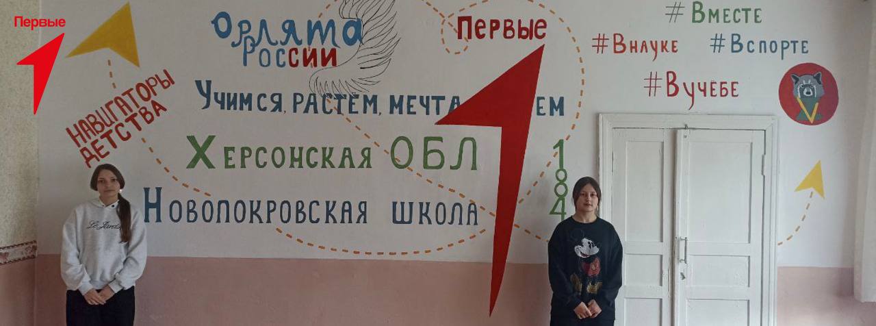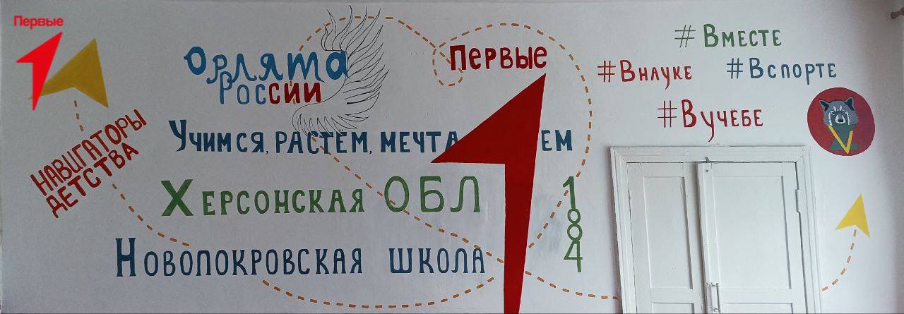 Активисты Движения Первых вместе с советником директора по воспитанию Новопокровской школы преобразили школьную стену, создав яркое граффити.