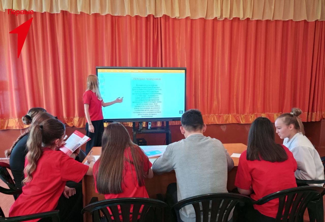 Активисты Движения Первых Чаплинской школы № 2 провели круглый стол, посвященный Всемирному дню ребенка. Ребята подготовили небольшие выступления, в которых рассказали о том, почему важно защищать права детей.