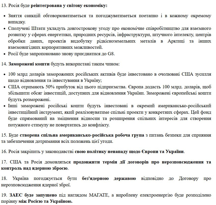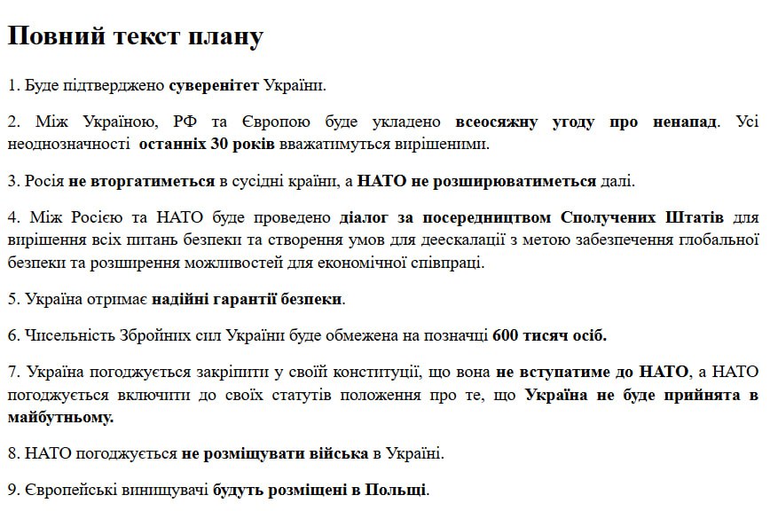 Украинские СМИ публикуют полный текст плана предложенный Трампом